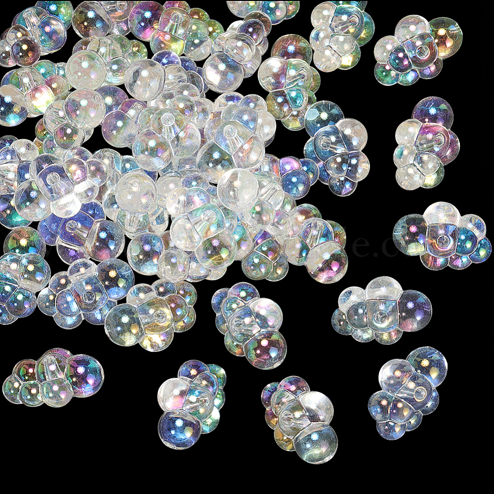 • Прозрачный 40прозрачные акриловые бусины с УФ-покрытием, УФ реактивный радужный, облако, прозрачные, 18x25x13 мм, отверстие : 2.5 мм