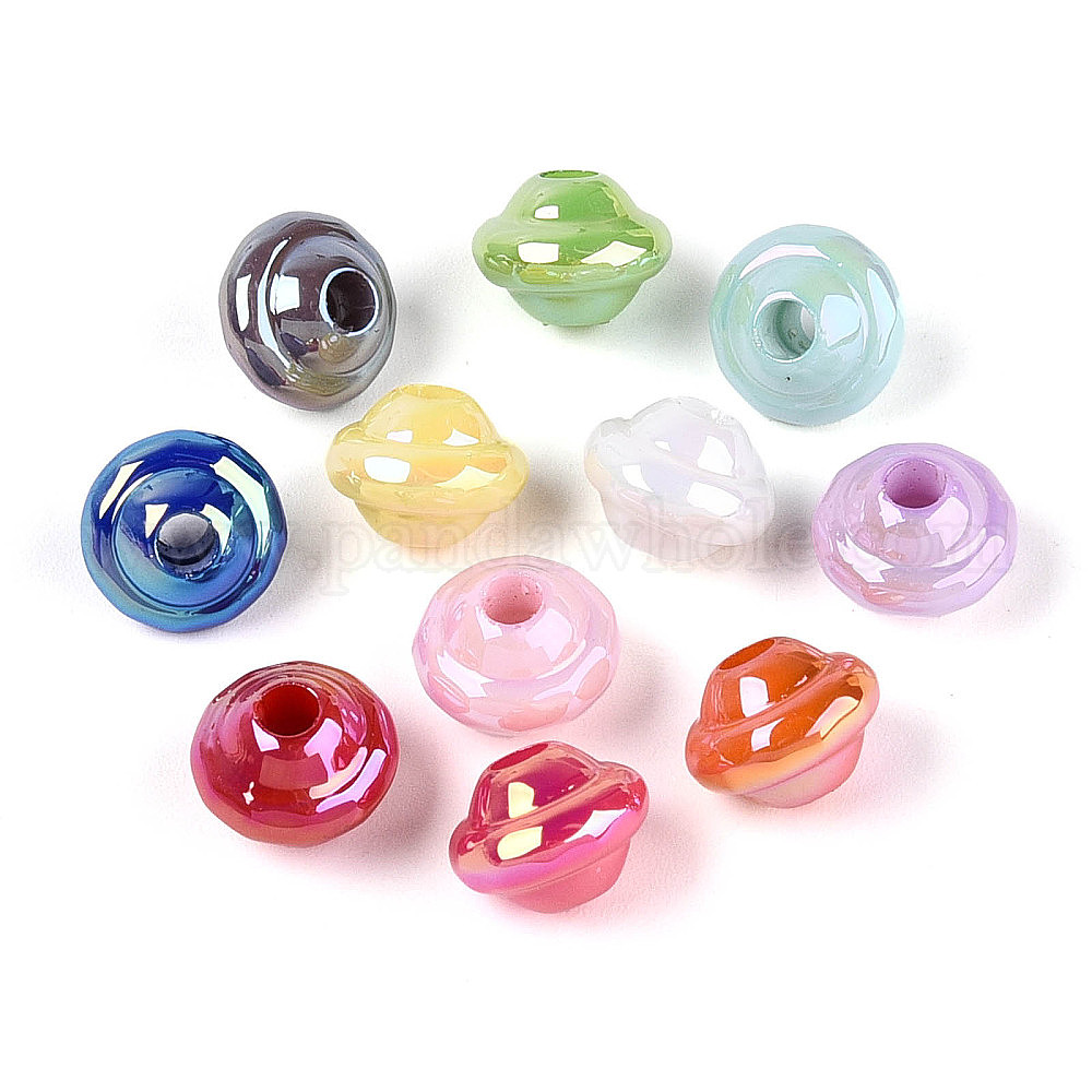 Непрозрачные акриловые бусины с УФ-покрытием, радужный, летающая тарелка