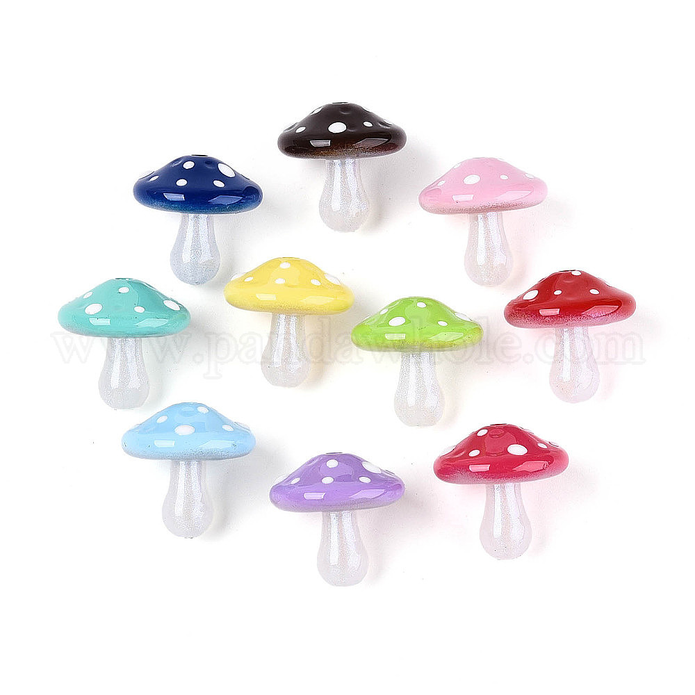 Непрозрачные светящиеся акриловые бусины с УФ-покрытием, радужный, гриб, светится в темноте, с блеском порошок