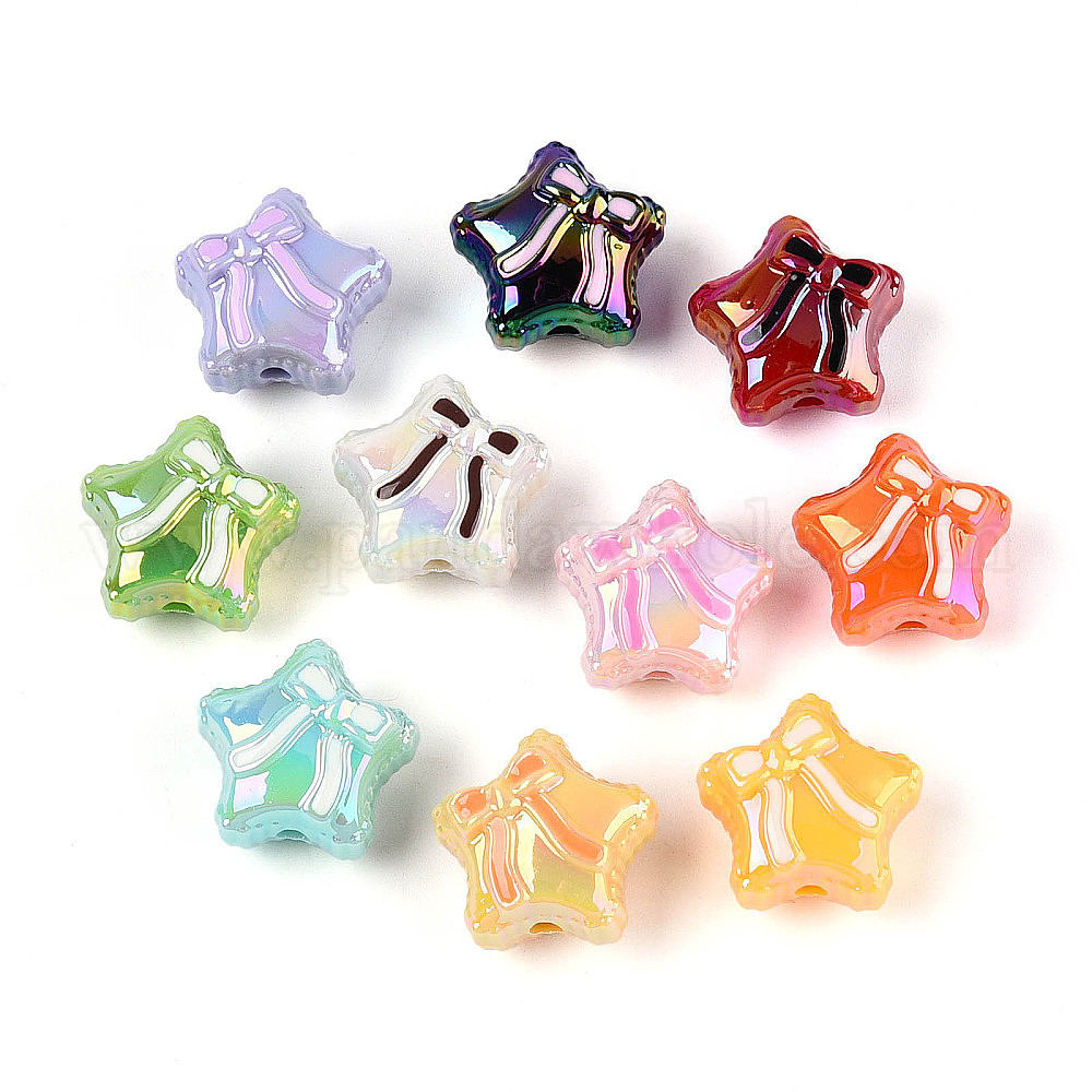 • (52) Непрозрачная лаванда Непрозрачные акриловые бусины с УФ-покрытием, радужный, звезда и бантом, с эмалью, разноцветные, 19x20x14 мм, отверстие : 2.8 мм