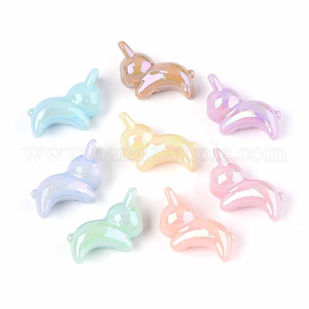 Непрозрачные акриловые бусины с УФ-покрытием, радужный, кролик