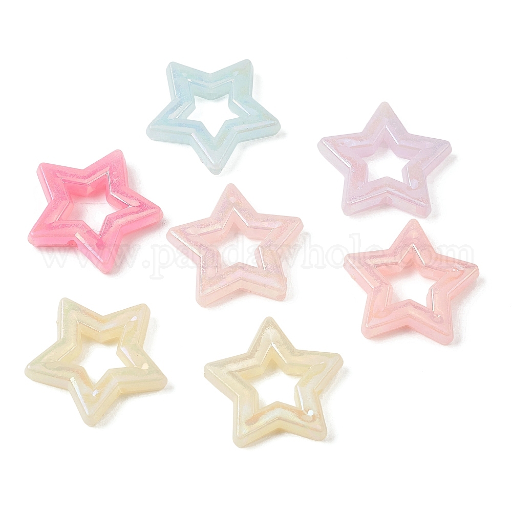 Непрозрачные акриловые бусины с УФ-покрытием, звезда, с покрытием AB цвета