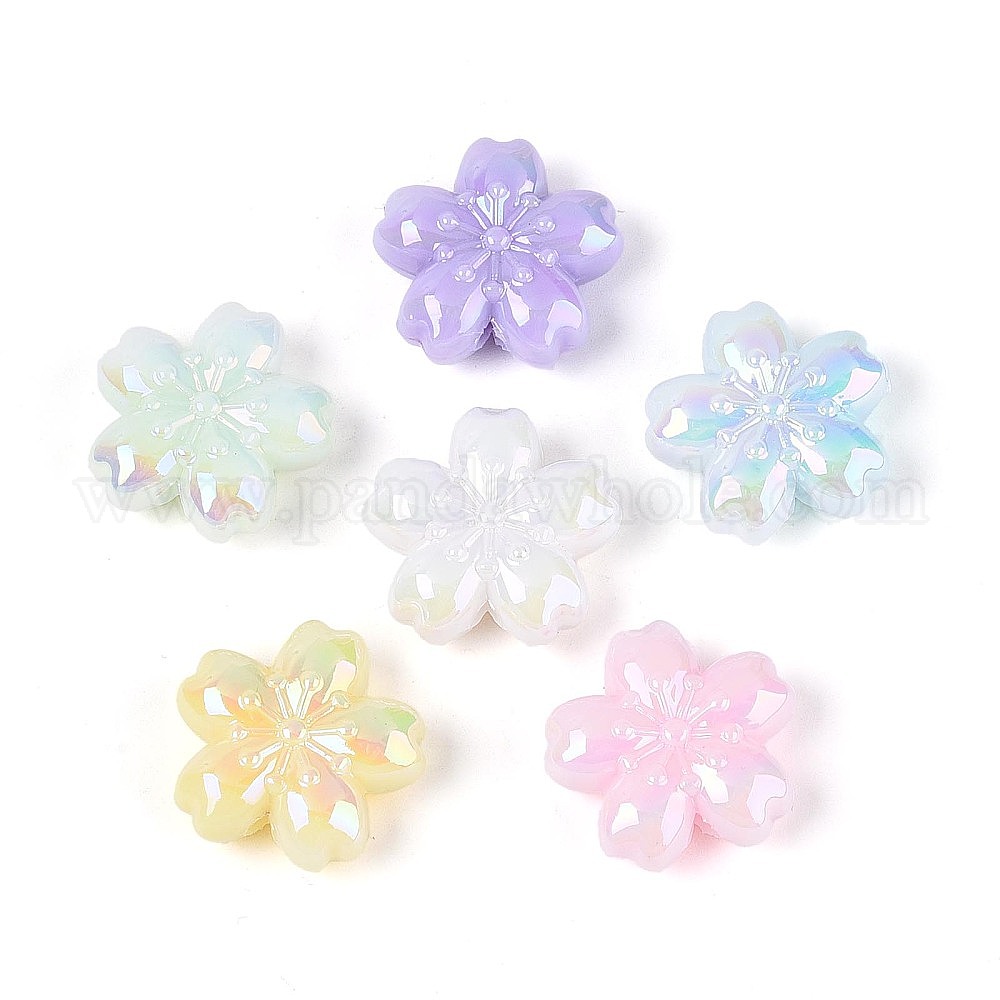 Непрозрачные акриловые бусины с УФ-покрытием, радужный, цветок