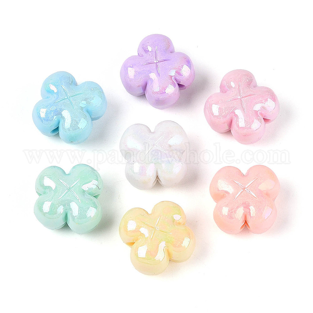 Непрозрачные акриловые бусины, цветок, с покрытием AB цвета