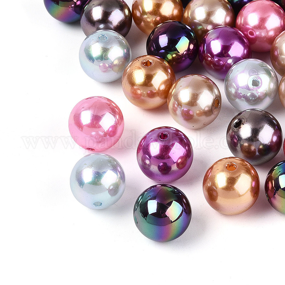 Непрозрачные акриловые бусины с УФ-покрытием, жемчужные, круглые