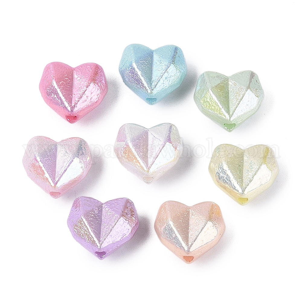 Непрозрачные акриловые бусины с УФ-покрытием, радужный, сердце, , граненые