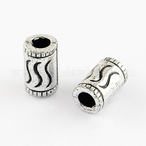 • Античное Серебрянное Покрытие Старинные акриловая бисера, колонка, античной посеребренные, 10x6 мм, отверстие : 3 мм, Около 2600 шт / 500 г