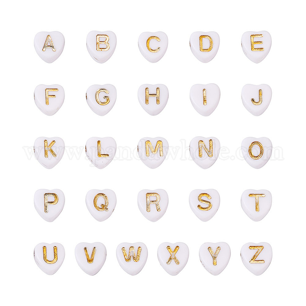 1000 шт. Гальванические непрозрачные акриловые бусины, сердце со смешанными золотыми буквами