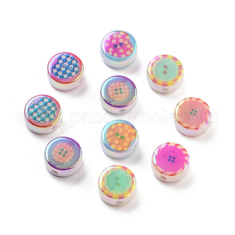 Акриловые бусины с УФ-покрытием, плоско-круглые