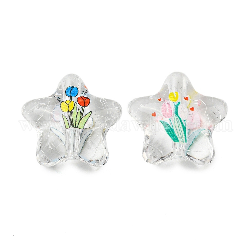 Прозрачные акриловые шарики печатных, звезды с цветком