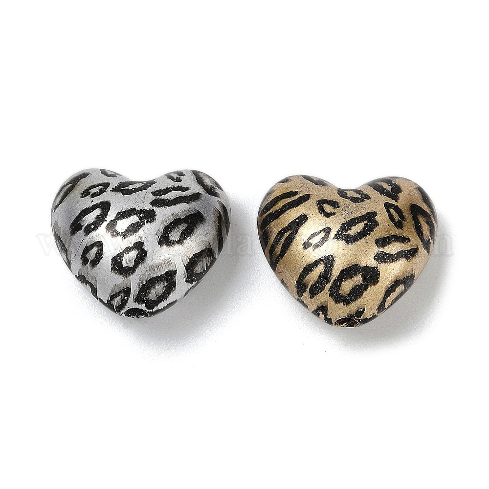 Окрашенные акриловые бусины , леопардовый принт в виде сердца