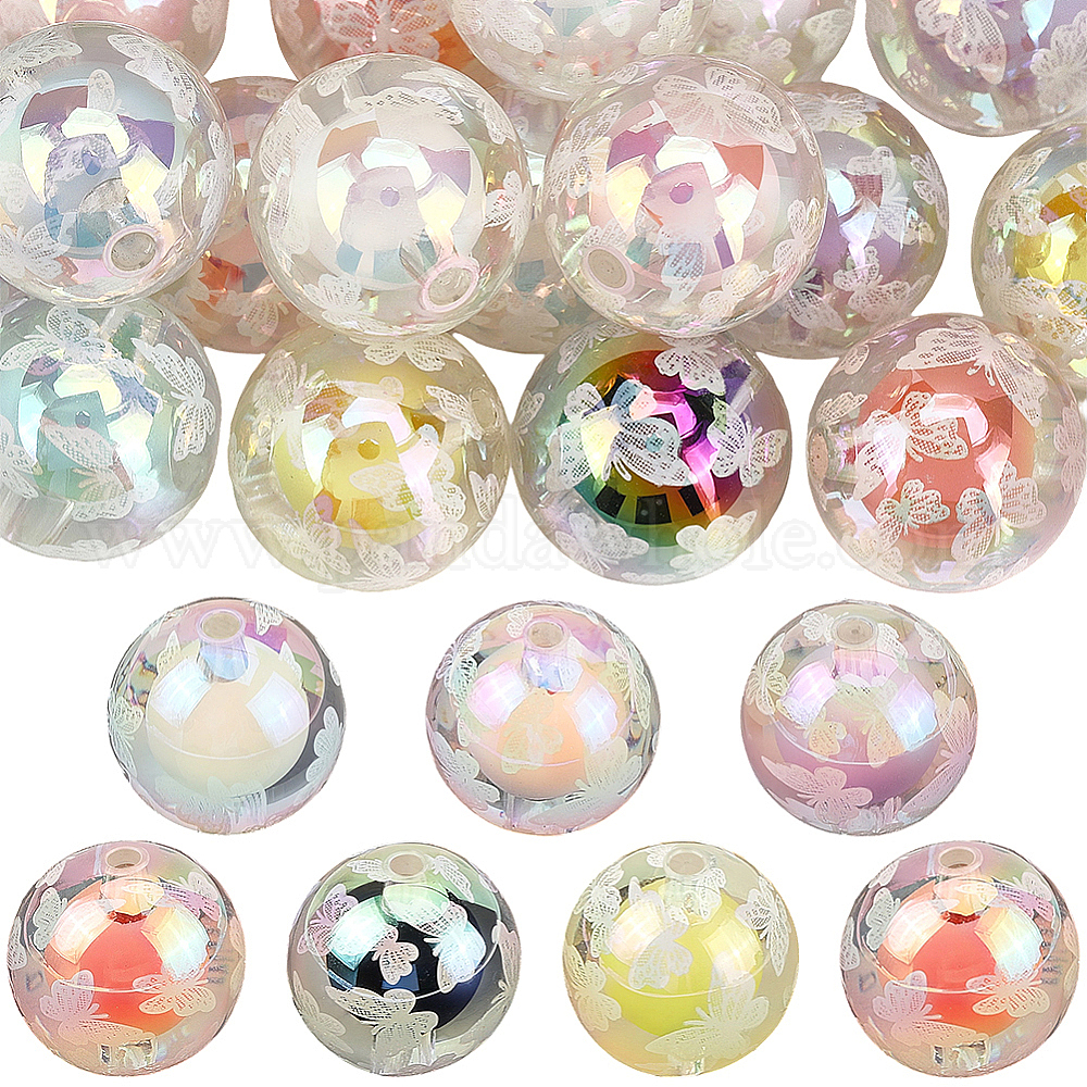 20шт. УФ-покрытие акриловые печатные бусины, бусина в бусине, радужный, круглые