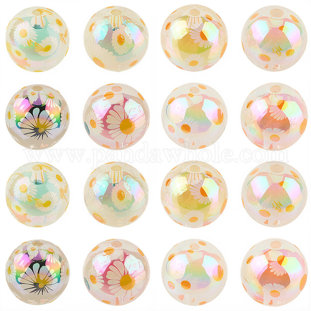 32 шт. 8 цветные УФ-покрытие, напечатанные прозрачные акриловые бусины, бусина в бусине, переливчатость, круглый с рисунком ромашки