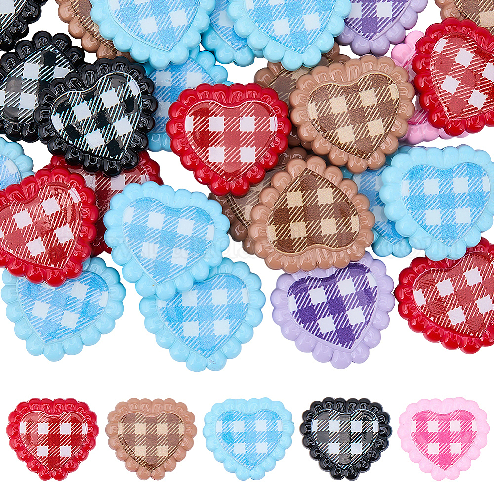 30шт. печатные непрозрачные акриловые бусины, сердце с сеткой