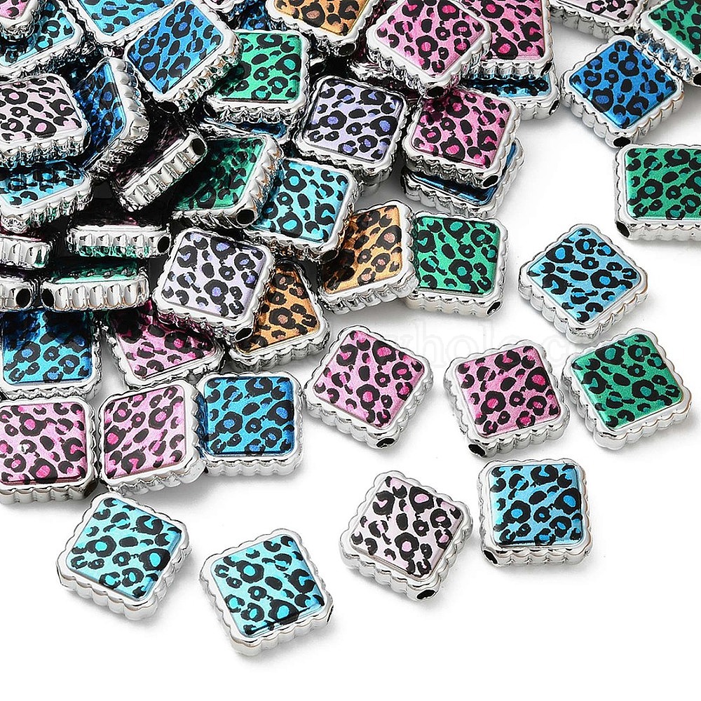 УФ-покрытие, напечатанное на непрозрачных акриловых бусинах, квадрат с печатью леопарда
