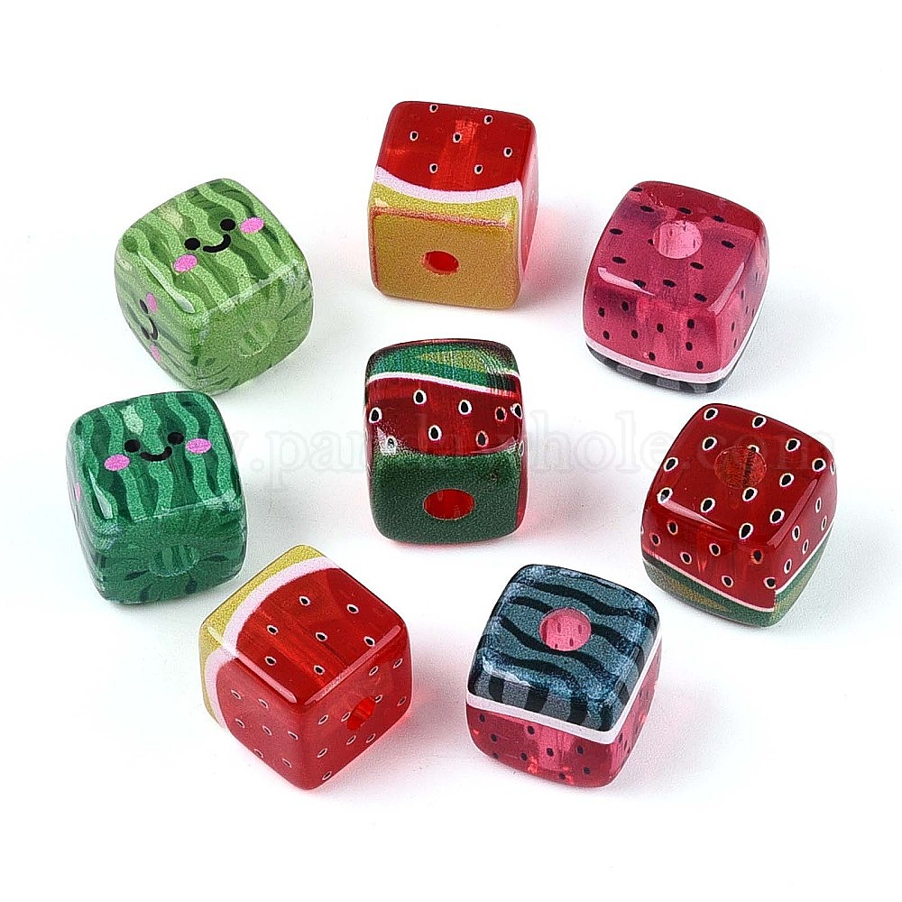 Печатные прозрачные акриловые бусины, кубик с арбузом