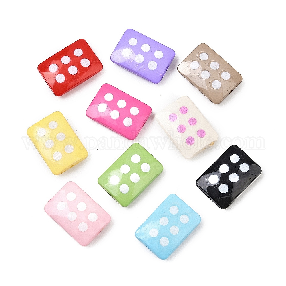 Непрозрачные печатные бусы акриловые, прямоугольник с точкой