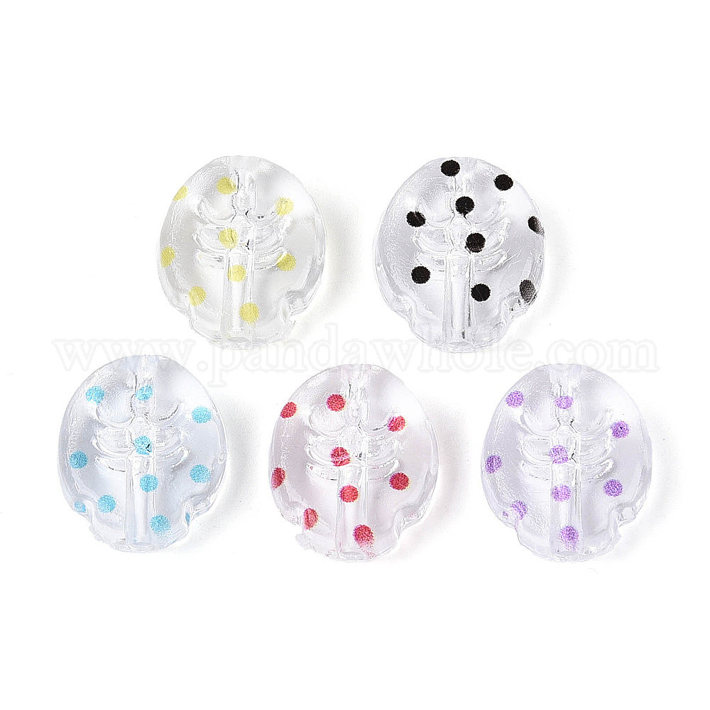Печатные прозрачные акриловые бусины, божья коровка в горошек