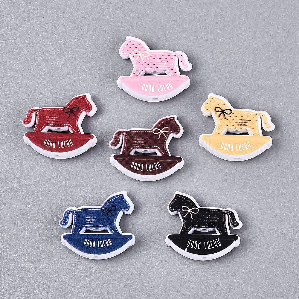 • (52) Непрозрачная лаванда Печатные непрозрачные акриловые бусины, лошадка-качалка с бантиком, разноцветные, 26x28x8.5 мм, отверстие : 2.8 мм