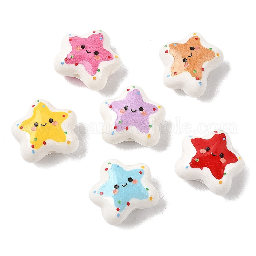 • (52) Непрозрачная лаванда Печатные непрозрачные акриловые бусины, звезда с улыбающимся лицом и точкой, разноцветные, 18.5x20x11 мм, отверстие : 2 мм
