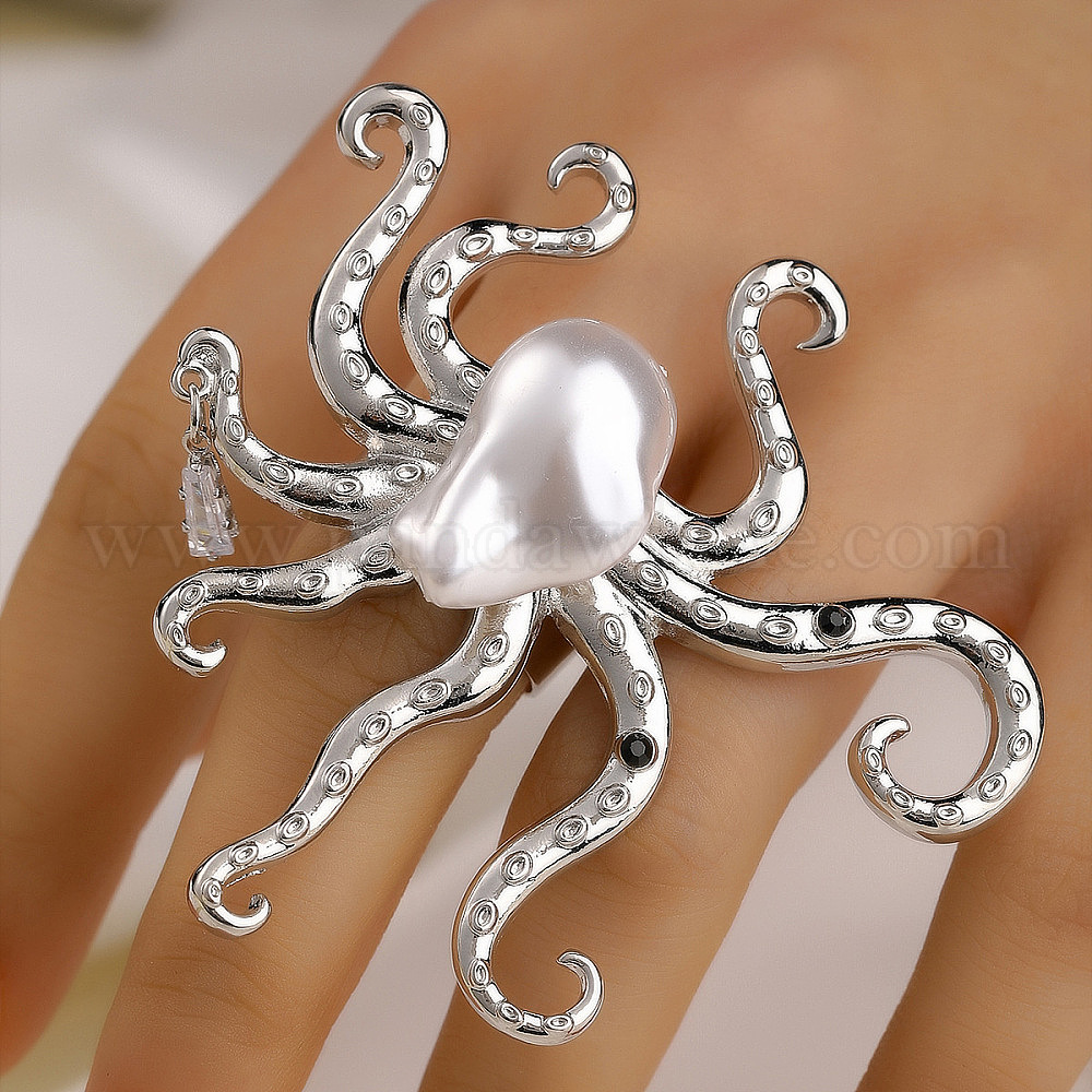 Женские перстни с жемчужинами из латуни, акрила и пластика в виде осьминога