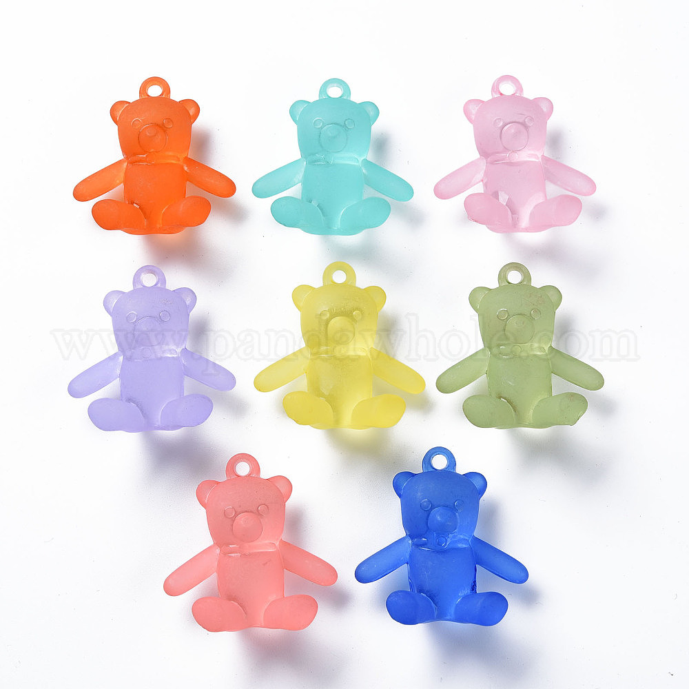 • Бледно-Розовый Подвески матовым акриловым, медведь, розовый жемчуг, 38.5x34x15 мм, отверстие : 2.5 мм, Около 94 шт / 500 г