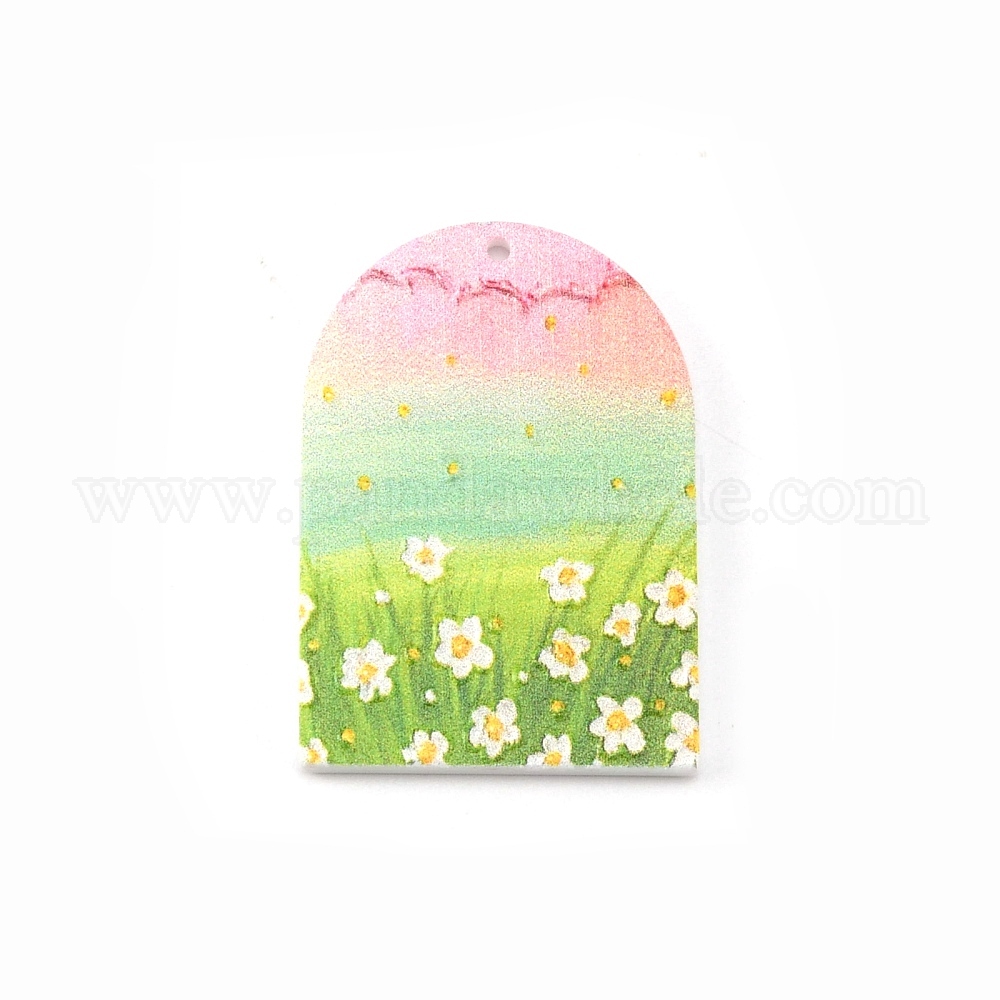 • Разноцветный Печатные акриловые подвески, аркообразная с цветочными подвесками, красочный, 34.5x24x2 мм, отверстие : 1.2 мм
