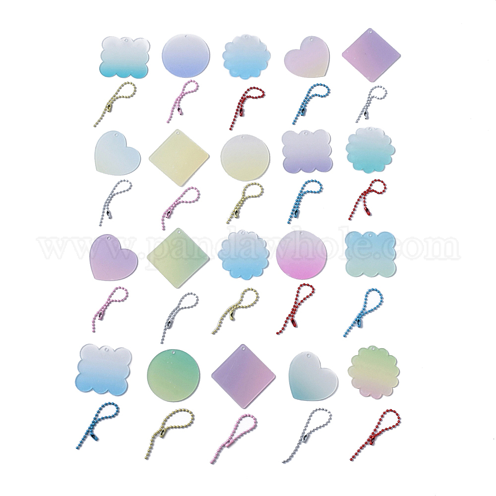 20шт 10 стильные акриловые пустые подвески, с шариковыми цепями из сплава 20шт., плоский круглый и сердце и квадрат и ромб, для изготовления украшений из брелка для вырезок