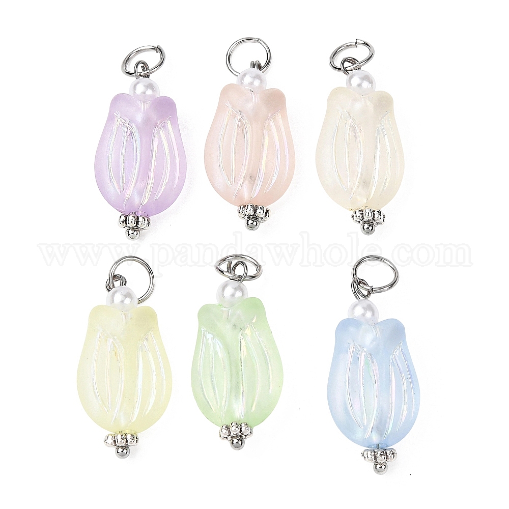 Цветочные прозрачный акрил подвески, матовые, с абс пластика имитация жемчуга и железные находки