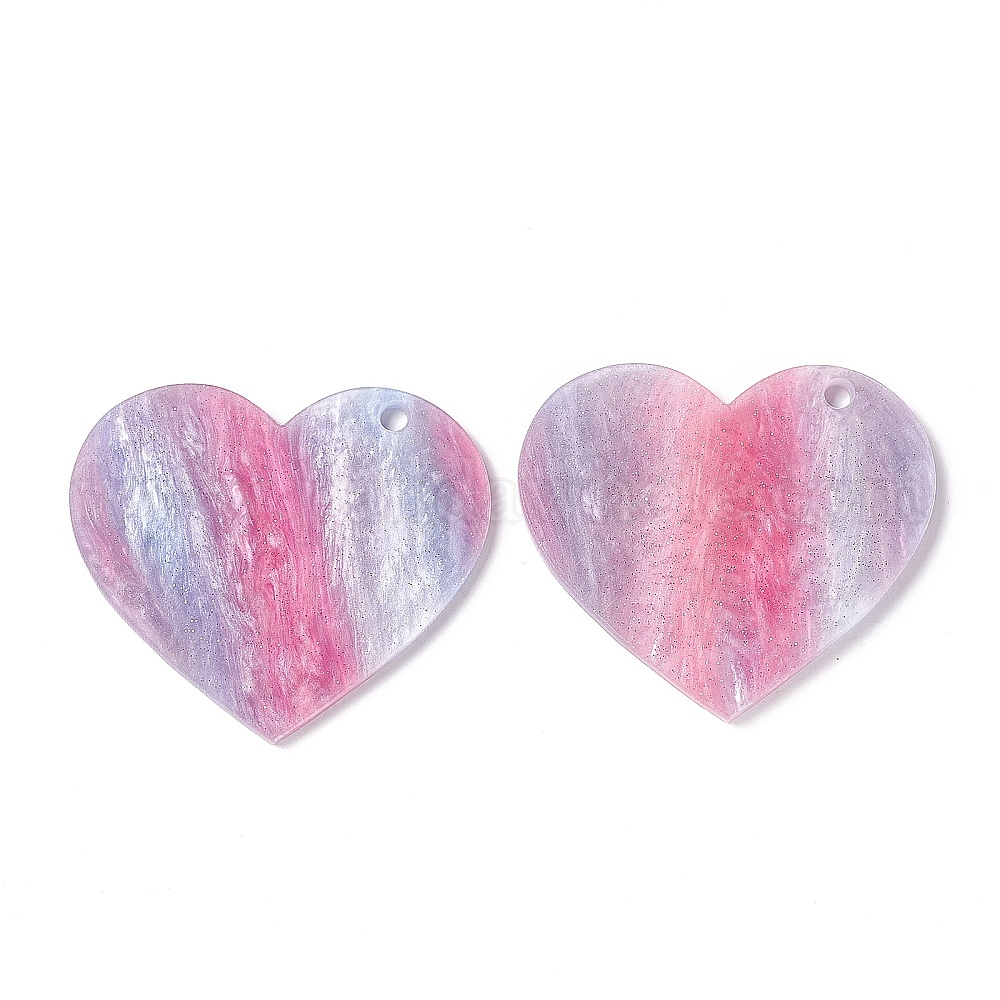 • Ярко-Розовый Подвески из акриловых дисков, с блеском порошок, Стиль имитация драгоценных камней, сердце, ярко-розовый, 42.5x49.5x2~2.5 мм, отверстие : 2.8 мм