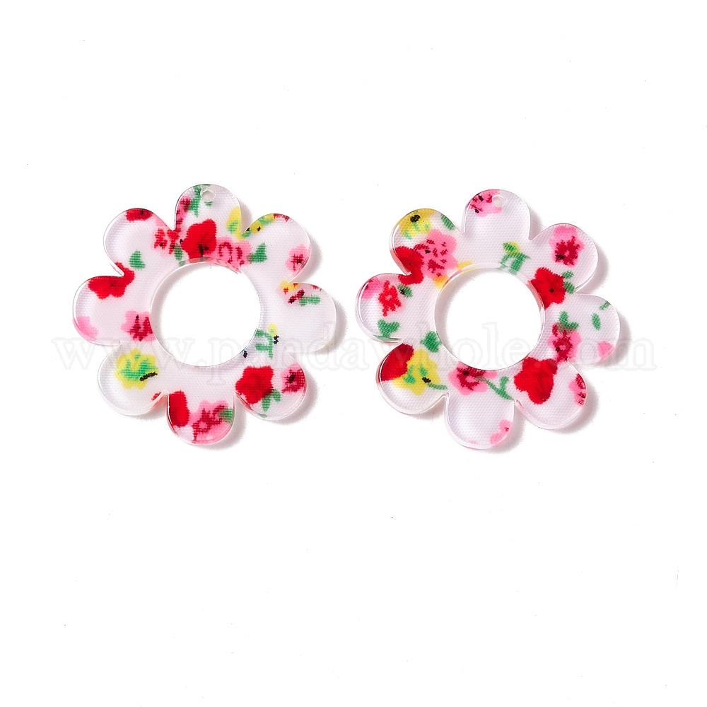 • Красный Прозрачные акриловые подвески, цветок с цветочным узором, красные, 29.5x2 мм, отверстие : 1.2 мм