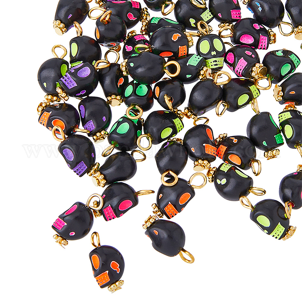200шт. акриловые подвески в виде черепа, со сплавочной фурнитурой, разноцветные