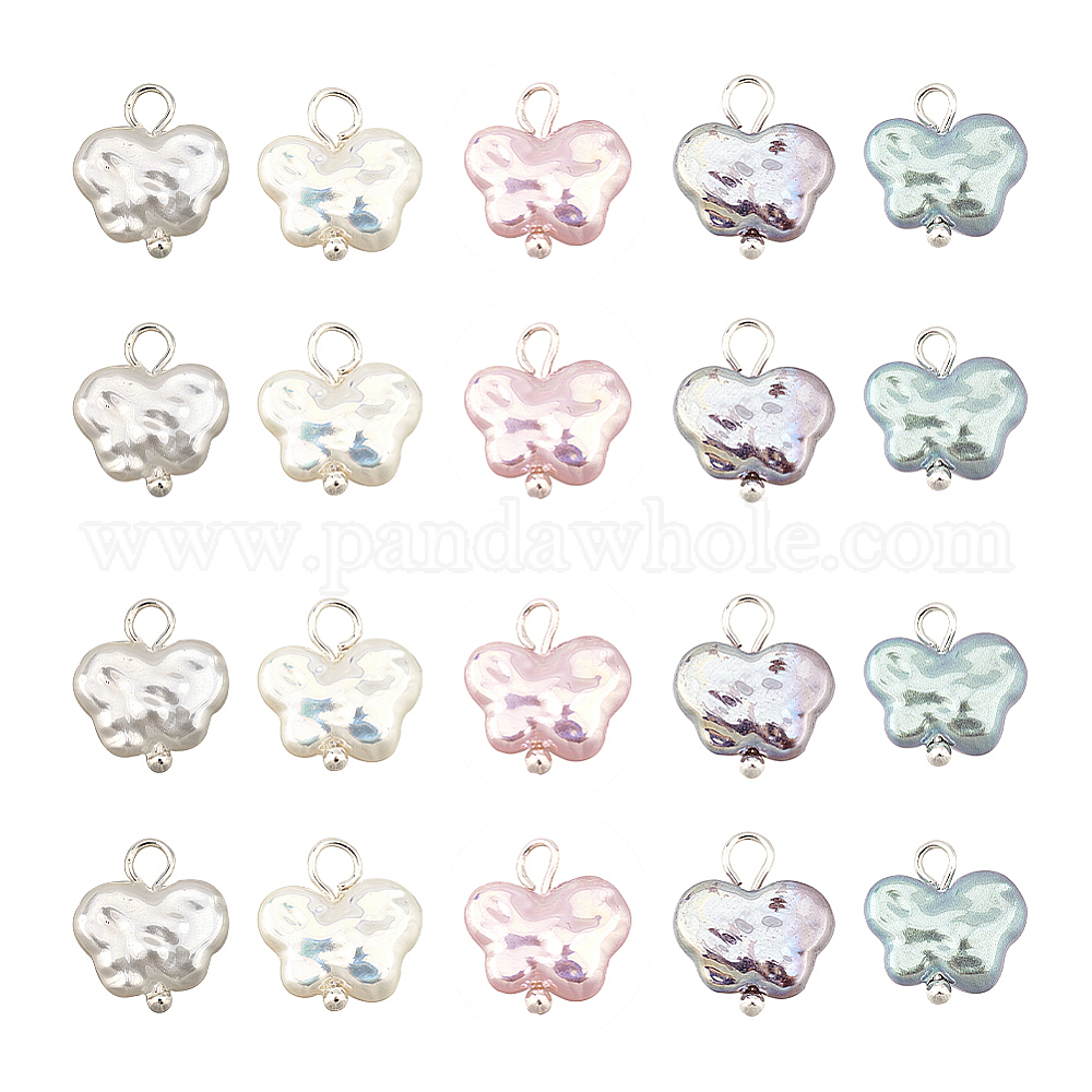 20шт 5 цвета АБС пластик имитация жемчуга подвески, с покрытием AB цвета, с латунной фурнитурой , бабочка
