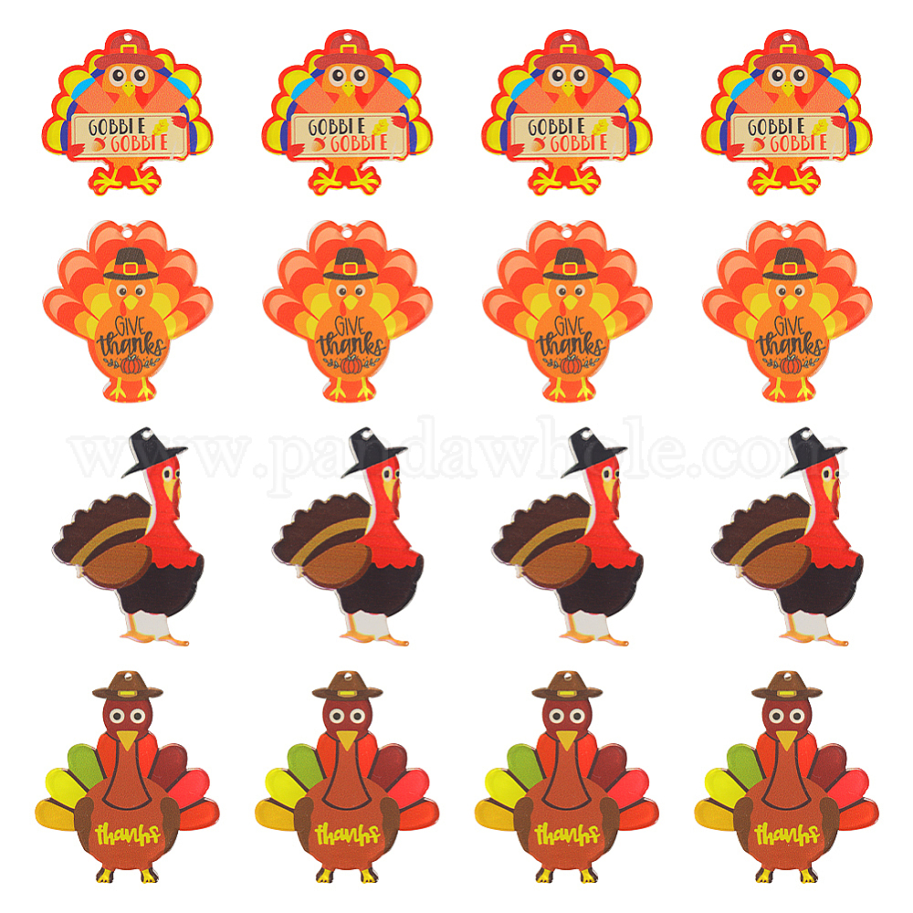 16шт 4 стили День благодарения непрозрачные акриловые подвески, очарование индейки