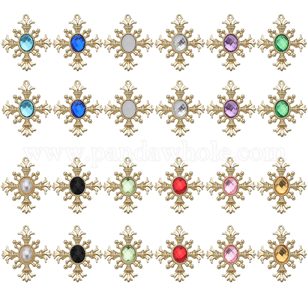 24шт 12 цвета акриловые подвески, с выводами светло-золотой тон сплава, крест очарование