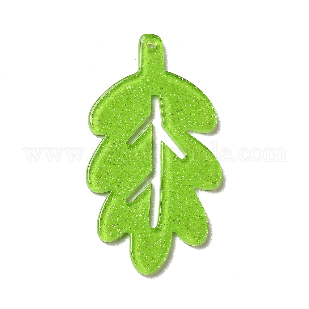 • Лайм Акриловые большие подвески, с блеском порошок, очарование листа, желто-зеленые, 50x27x2 мм, отверстие : 1 мм