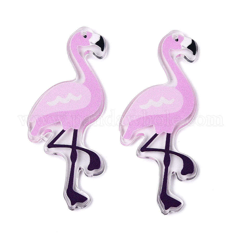 • Сливовый Прозрачный акриловый большой кулон, фламинго, слива, 55x22x2 мм, отверстие : 1.2 мм
