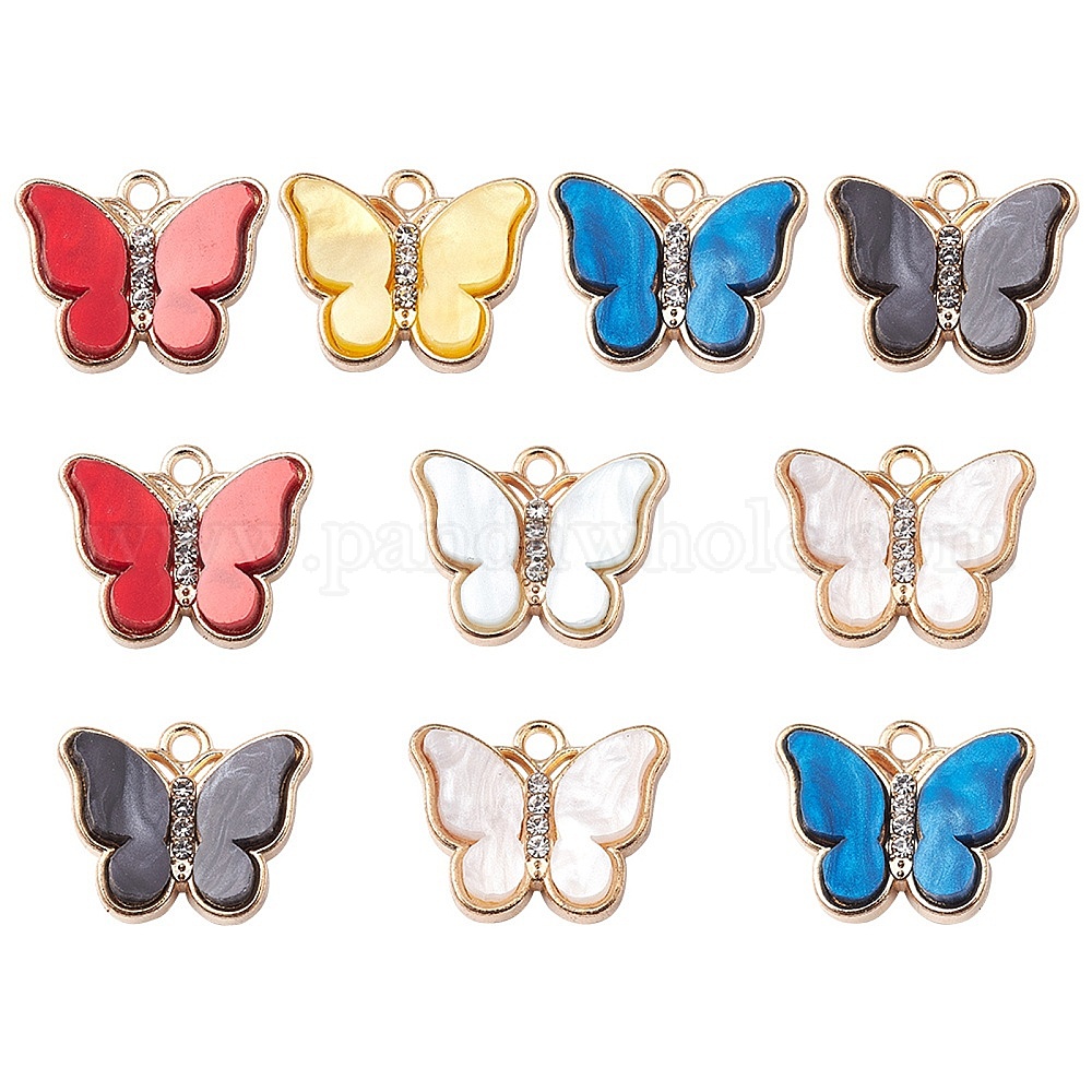 Акриловые подвески, с фурнитурой из сплава светло-золотистого цвета со стразами, очарование бабочки