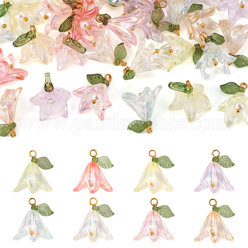 • (52) Непрозрачная лаванда 32шт 8 цветные подвески из прозрачного акрила, с бусинами из ракушек и латунной фурнитурой, прелести цветка лилии, разноцветные, 20x16x12 мм, отверстие : 3 мм