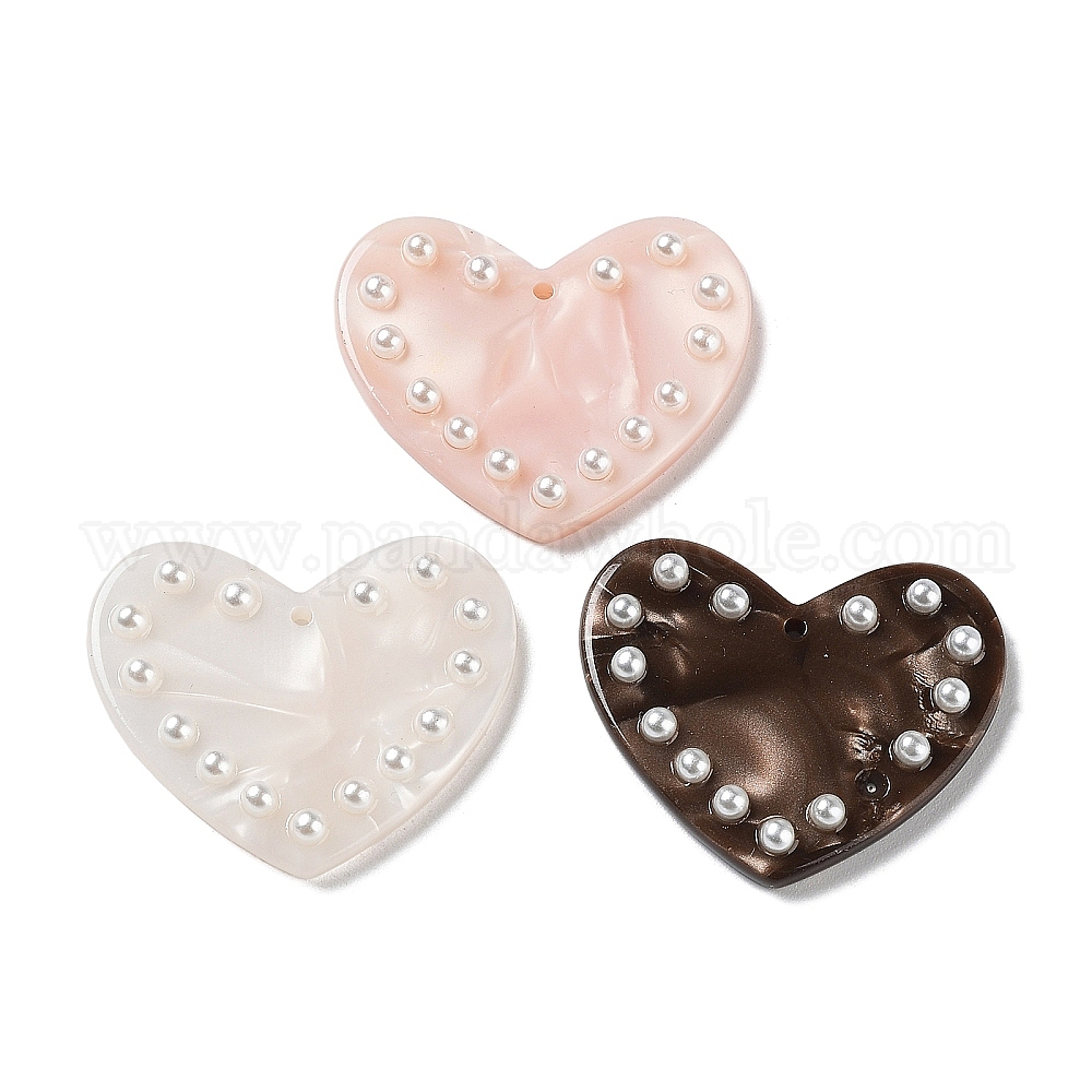 Акриловые кулон, с пластиковой жемчужины, сердце