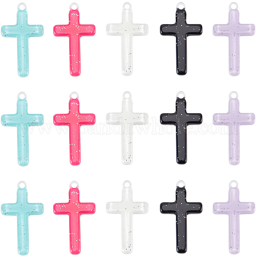 30шт 5 цветные непрозрачные акриловые подвески, с блестками, крест очарование