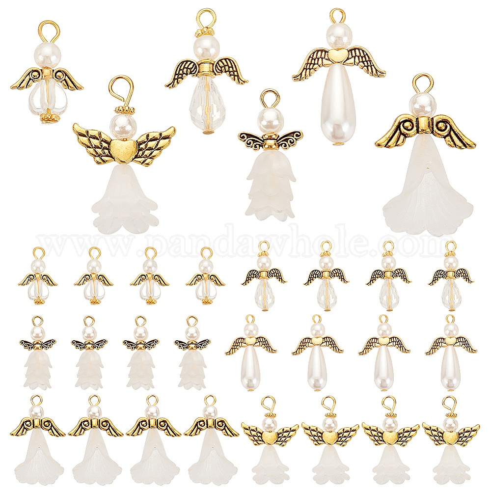 48 шт 6 стили акриловые подвески, со сплавочной фурнитурой, ангел