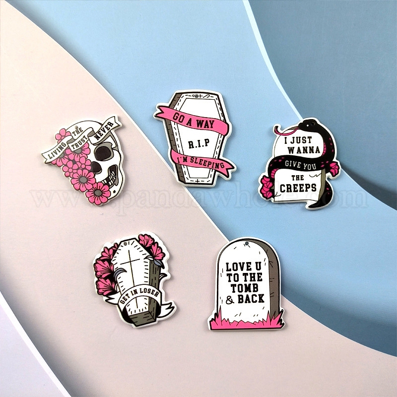 • Другие Акриловые подвески серии Хэллоуин, слово иди, я сплю, гроб, 38x35 мм