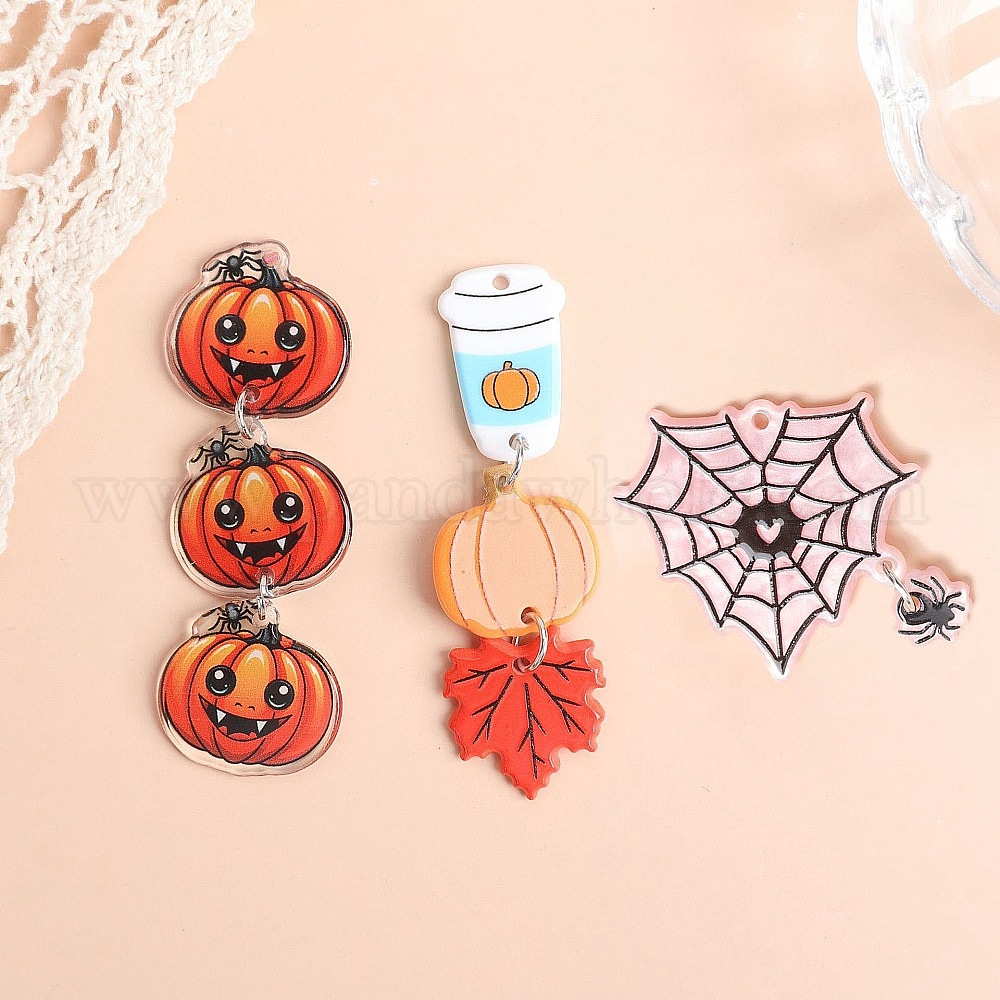 Акриловые подвески с принтом на хэллоуин, амулет тыква/паук/лист