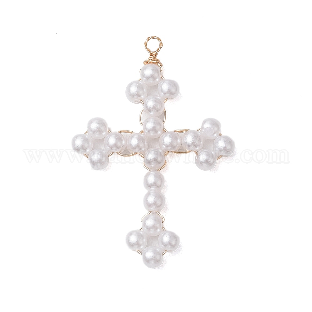 • Light Gold Акриловые подвески, обернутые медной проволокой, крест прелести, золотой свет, 41x28x4 мм, отверстие : 2 мм