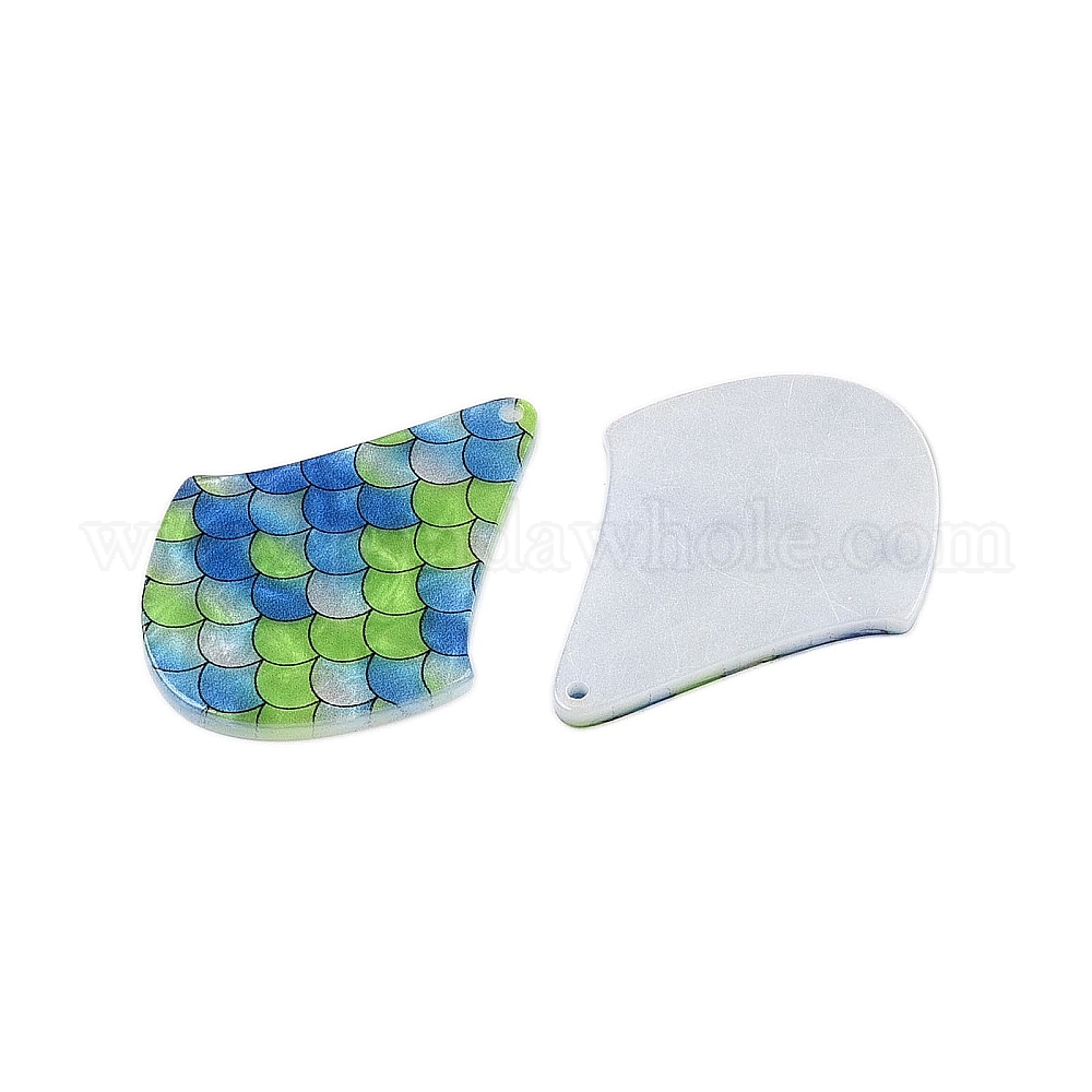 • Зелено-Желтый Печатные акриловые подвески, фигурка из рыбьей чешуи, зеленый желтый, 39.5x31x2.5 мм, отверстие : 1.5 мм