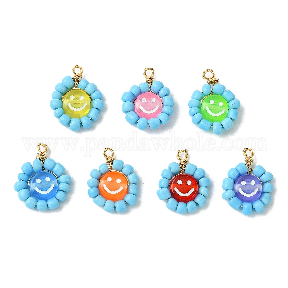 Подвески из акрилового стекла с бусинами, плоские круглые с улыбающееся лицо (02WWRQ)