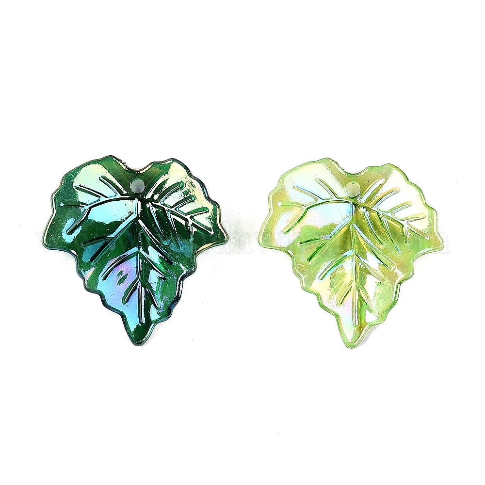 • Зелено-Желтый Акриловые подвески, с цветом аб покрытием, лист, зеленый желтый, 24x23x4 мм, отверстие : 1.6 мм