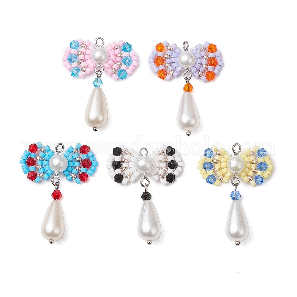 Стеклянные бусины ручной работы, Ткацкий станок, с акриловыми шариками, бантом кулон