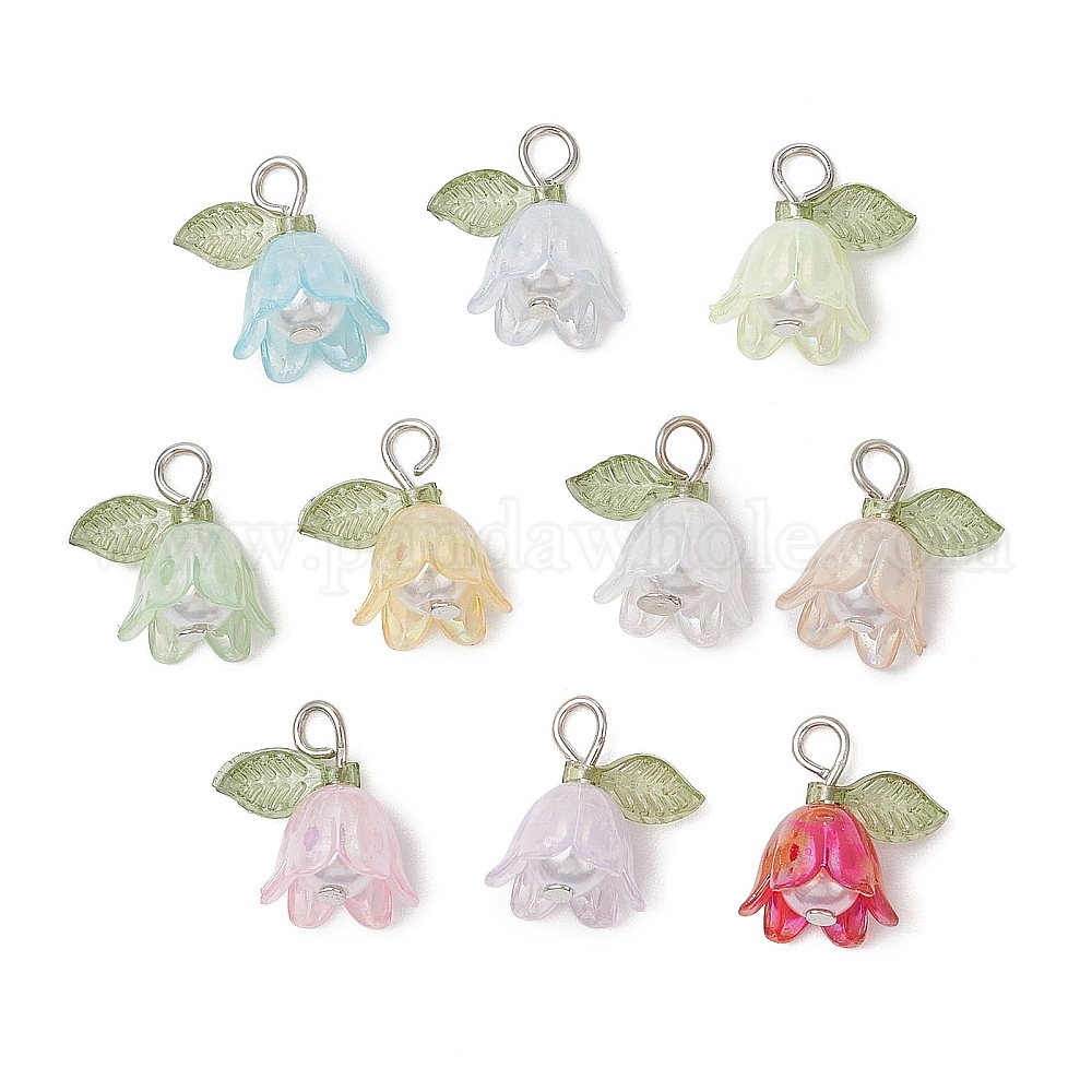 10шт. подвески из акрила и смолы, с платиновыми тоновыми железными петлями, цветок